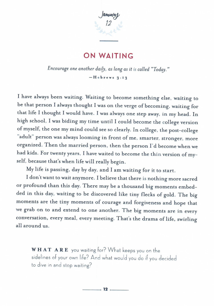 January 12 - On WaitingPublished on January 12th, 2023 Niequist, S. (2015). Savor: Living Abundantly Where You Are, As You Are (Standard ed.). Zondervan.0Submit
