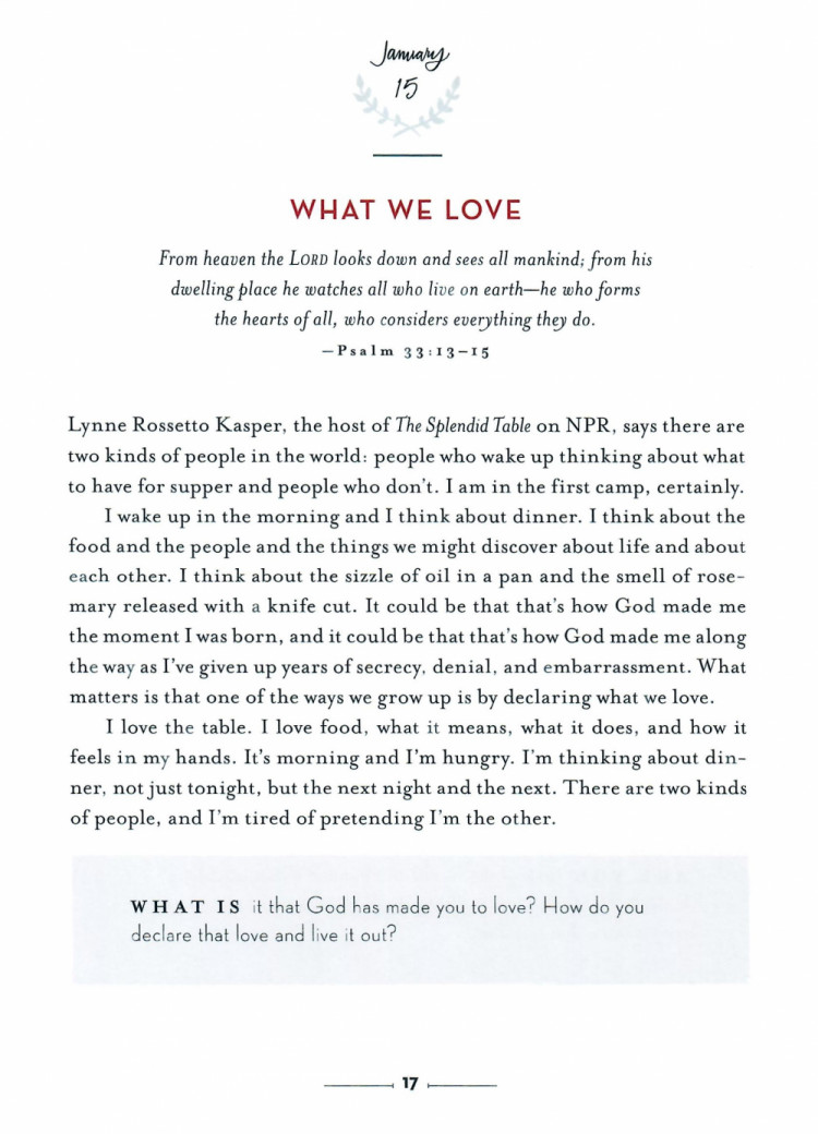 January 15 - What We LovePublished on January 15th, 2023 Niequist, S. (2015). Savor: Living Abundantly Where You Are, As You Are (Standard ed.). Zondervan.0Submit